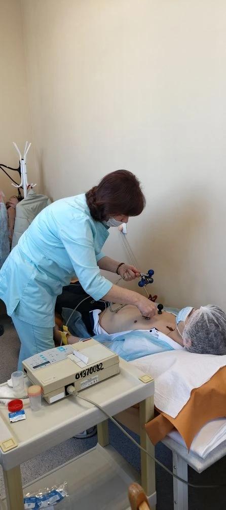 В терапевтическом отделении школьники смогли наблюдать процедуру снятия электрокардиограммы (ЭКГ). Медсестра Людмила Иванова объяснила принцип работы аппарата и показала, как интерпретируются полученные данные. Этот опыт помог учащимся лучше понять важность диагностики заболеваний сердечно-сосудистой системы и значимость своевременного выявления патологий сердца.